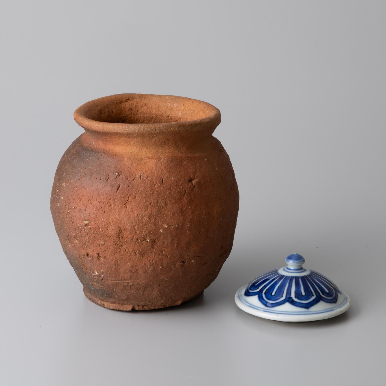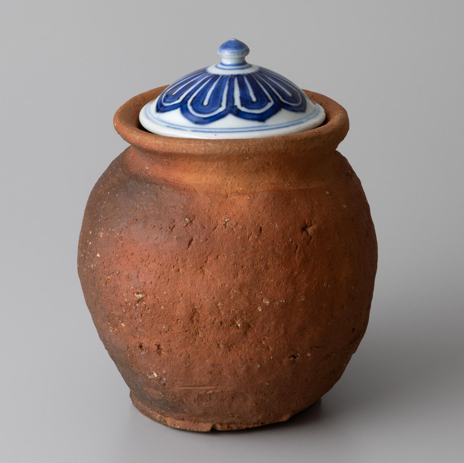 蛸壺を水指に見立てており、染付の蓋が添う。
