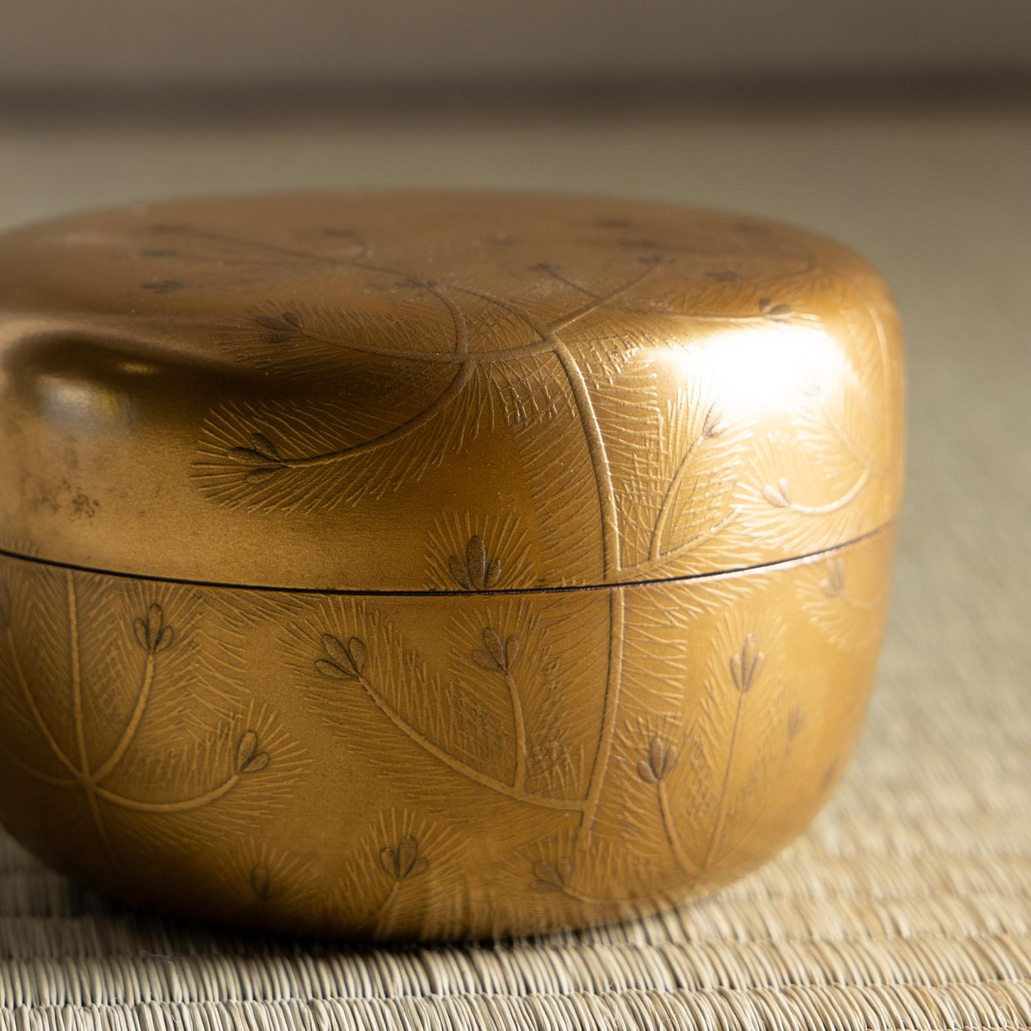 箱表には、粉溜 平棗 若松蒔絵 とあり。