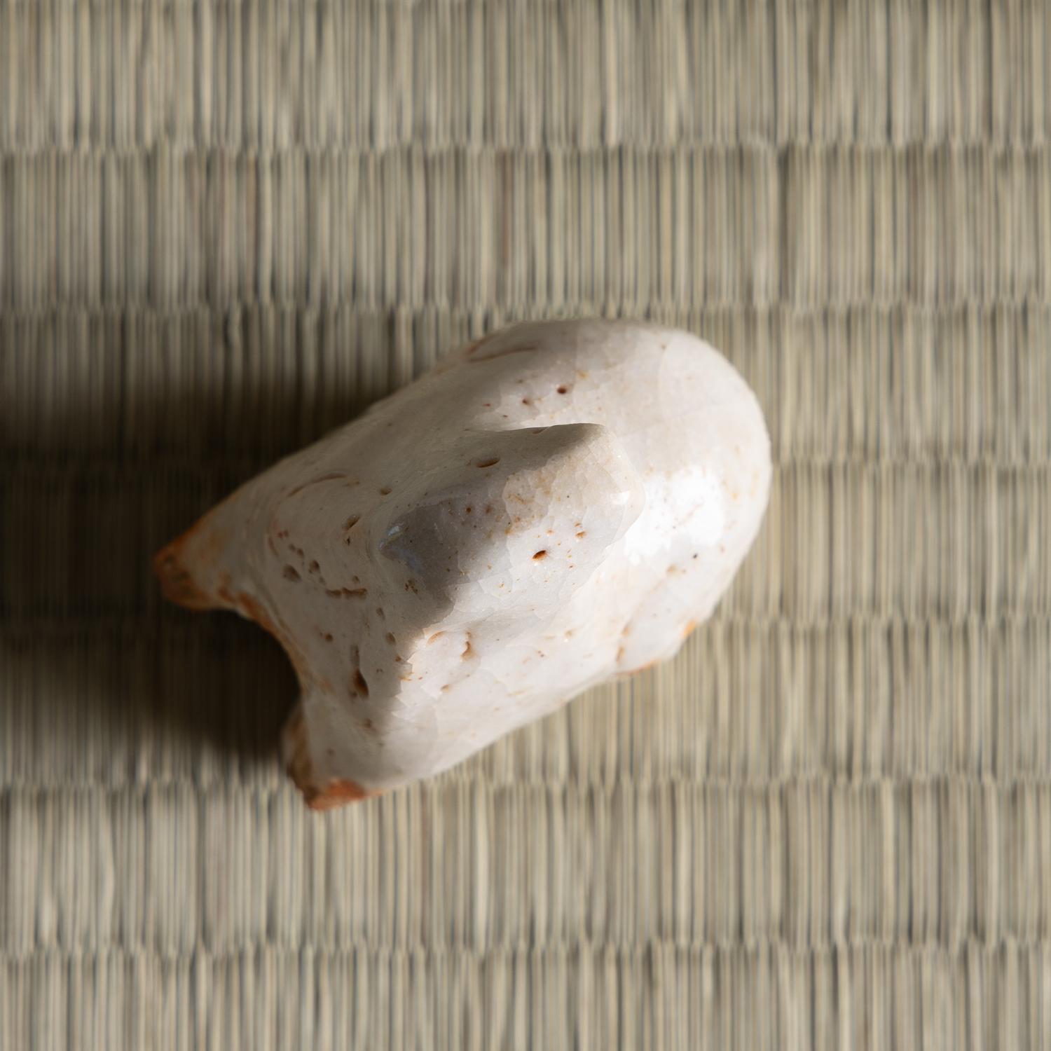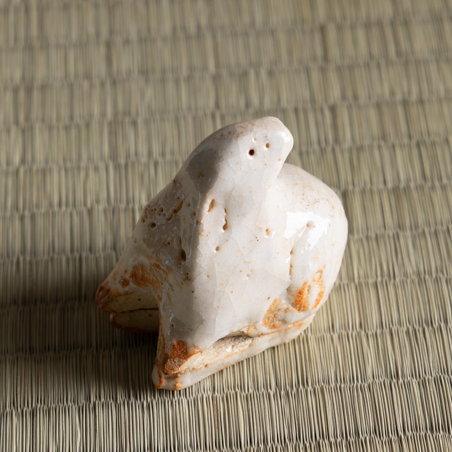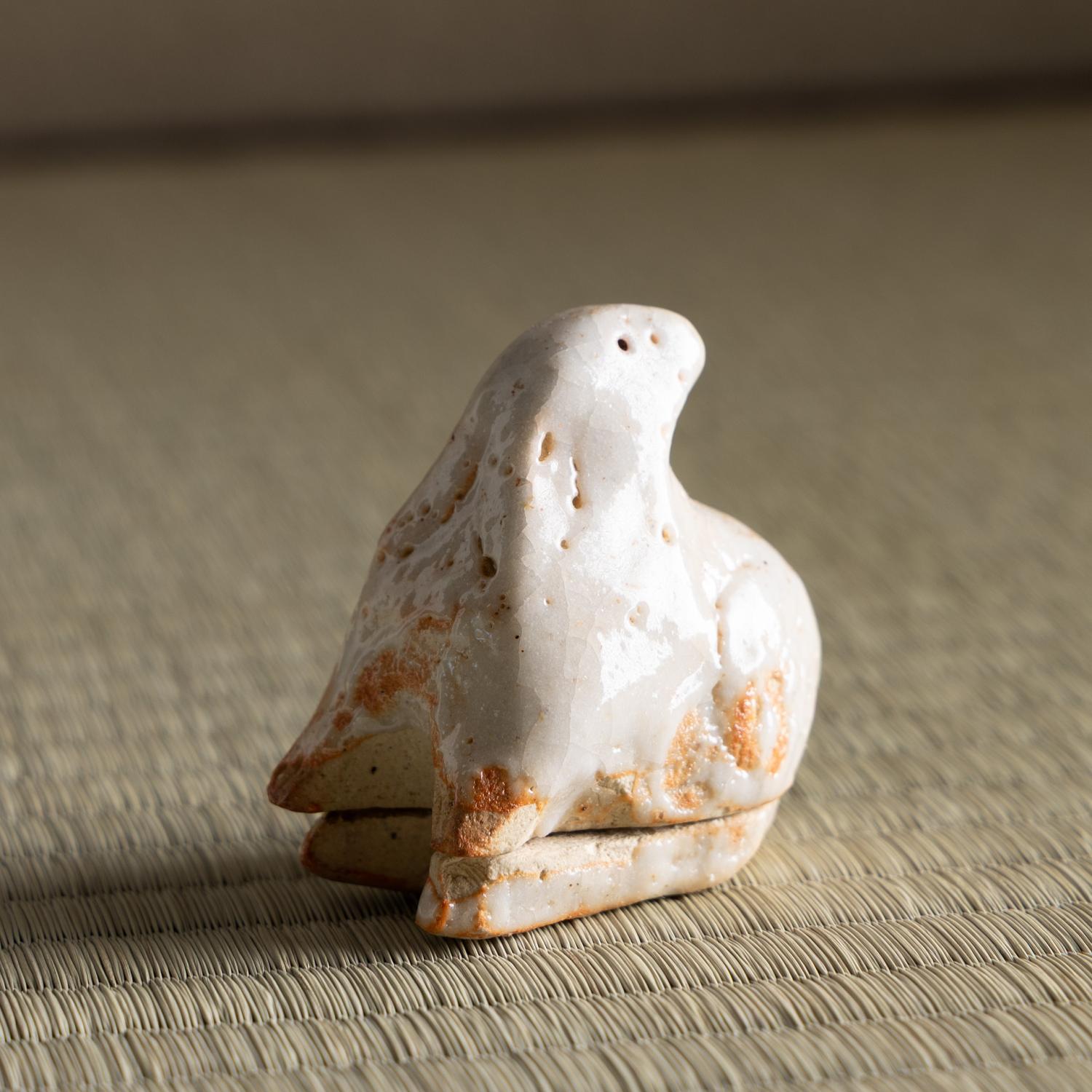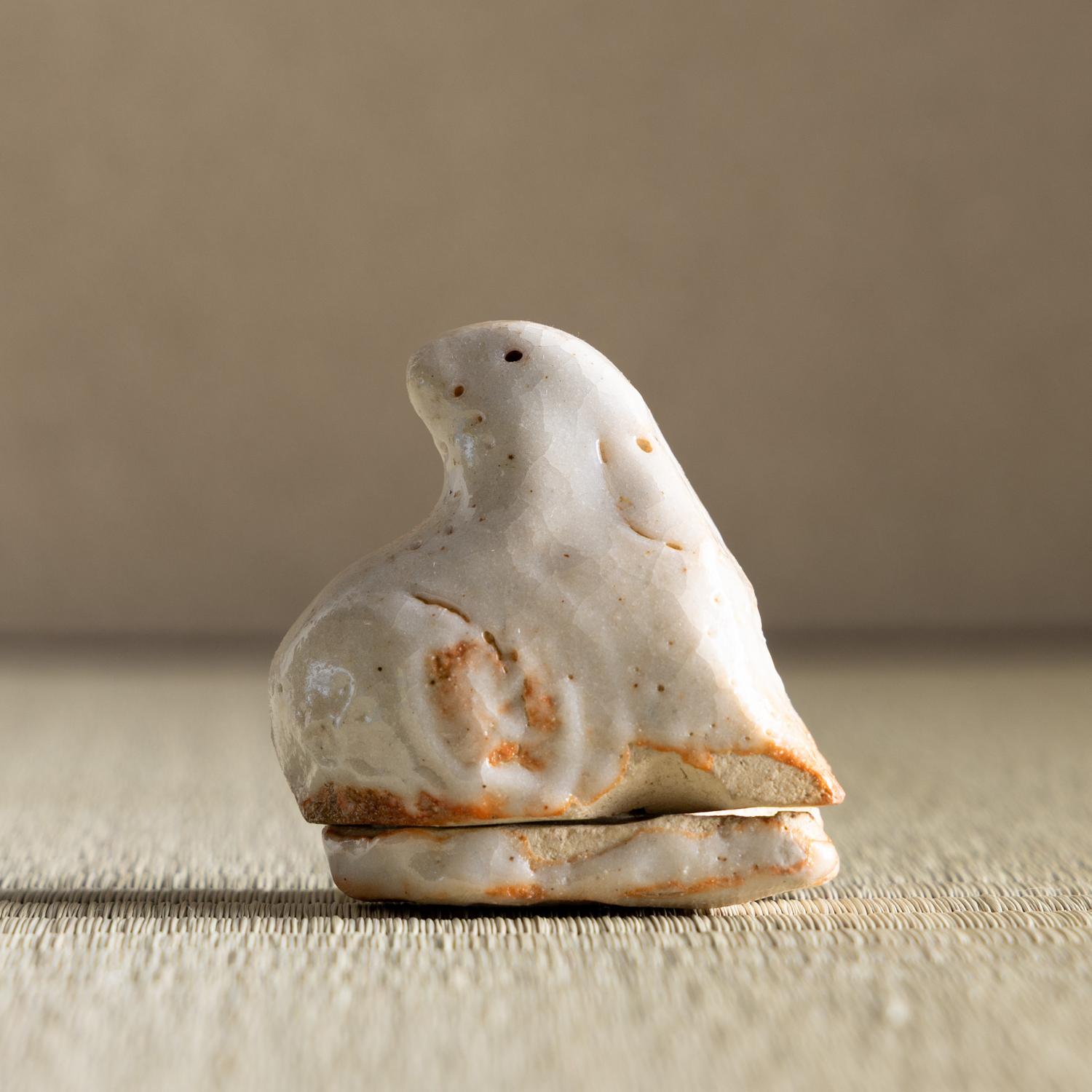 この香合は、青邨が自宅のこたつで作っていた陶器の香合を荒川豊蔵が焼き「前田青邨喜寿記念陶展」於日本橋三越s37年に出品されたものです。