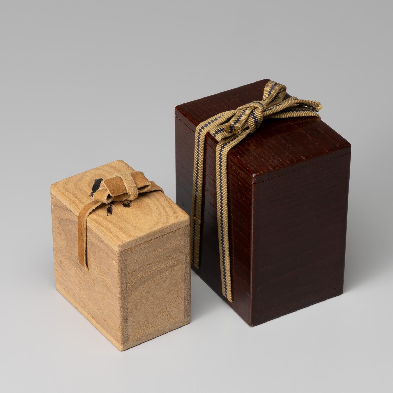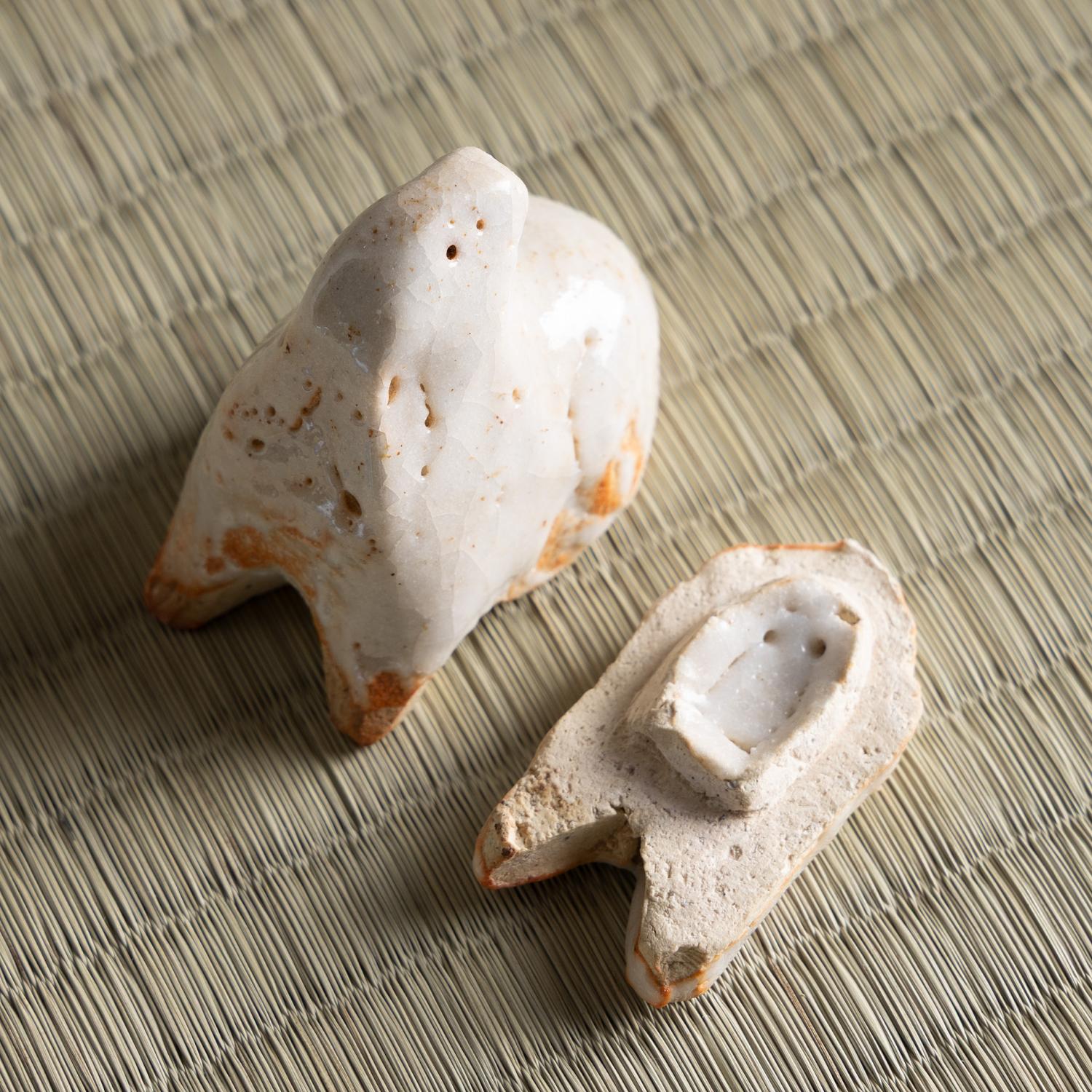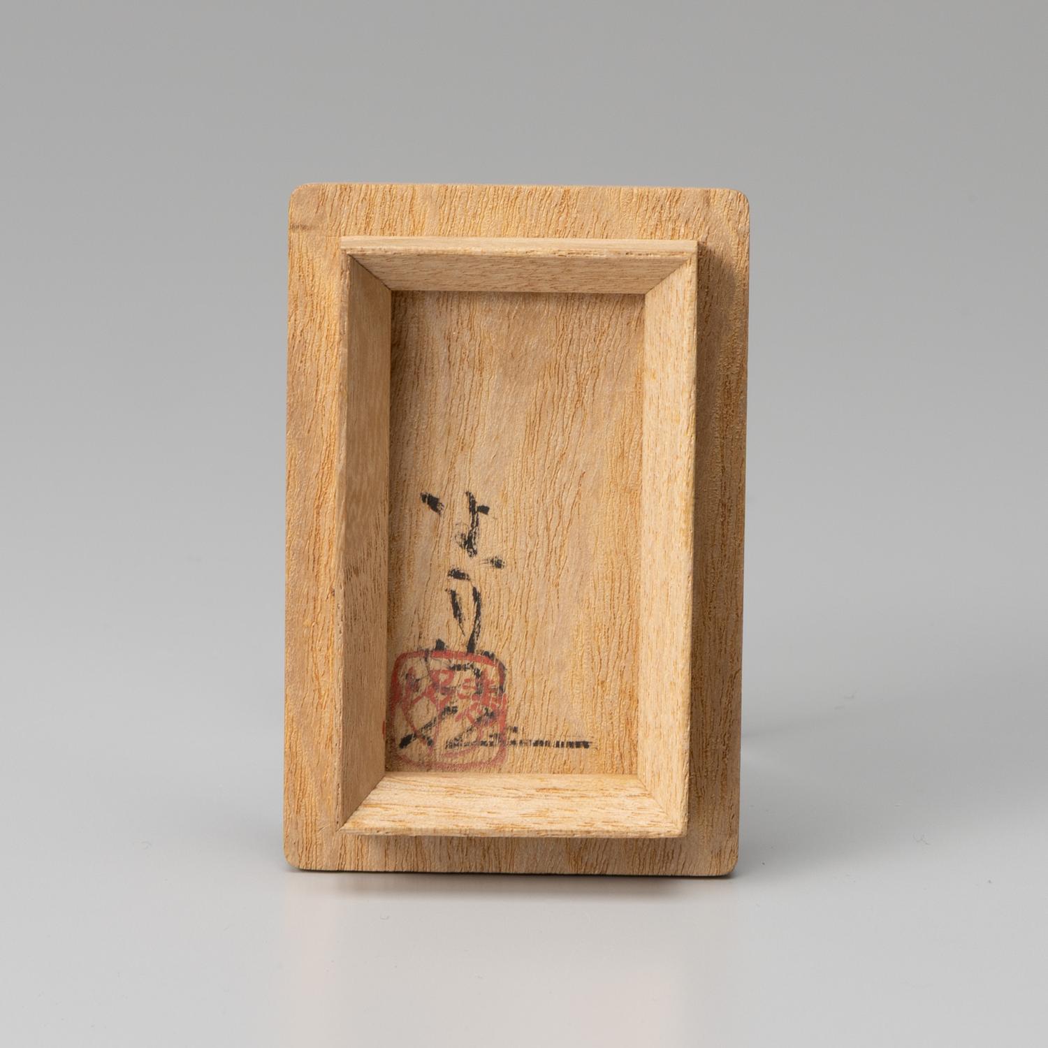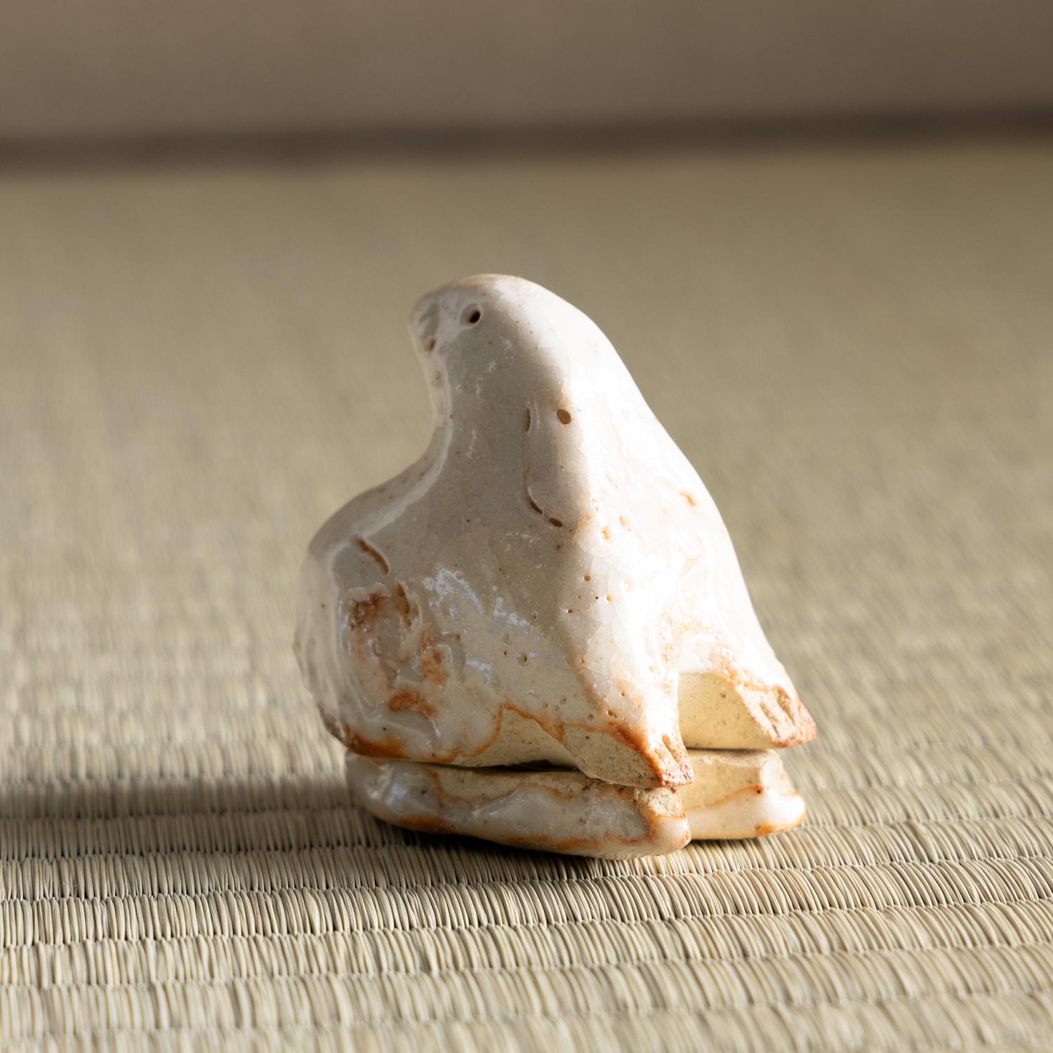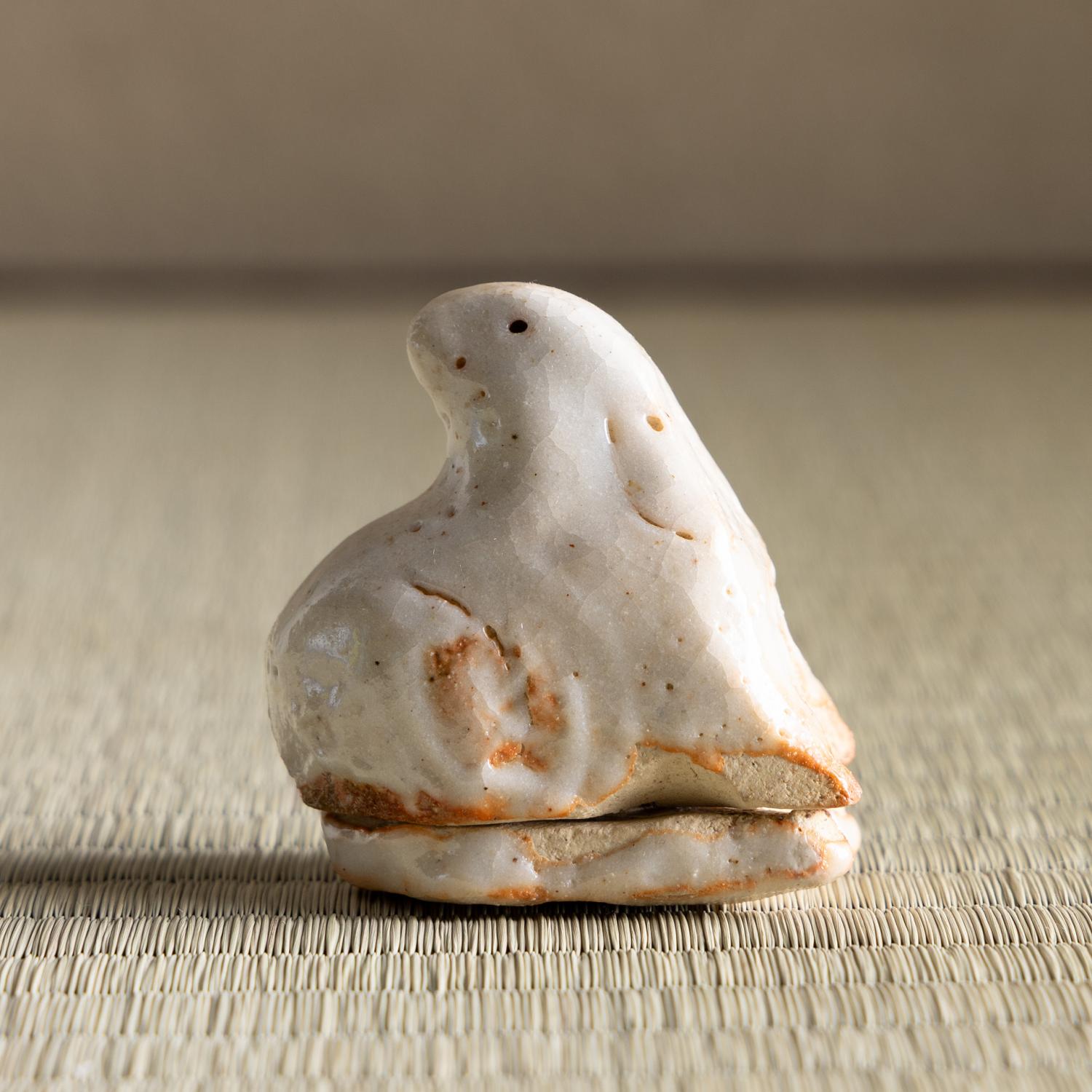 この香合は、青邨が自宅のこたつで作っていた陶器の香合を荒川豊蔵が焼き「前田青邨喜寿記念陶展」於日本橋三越s37年に出品されたものです。