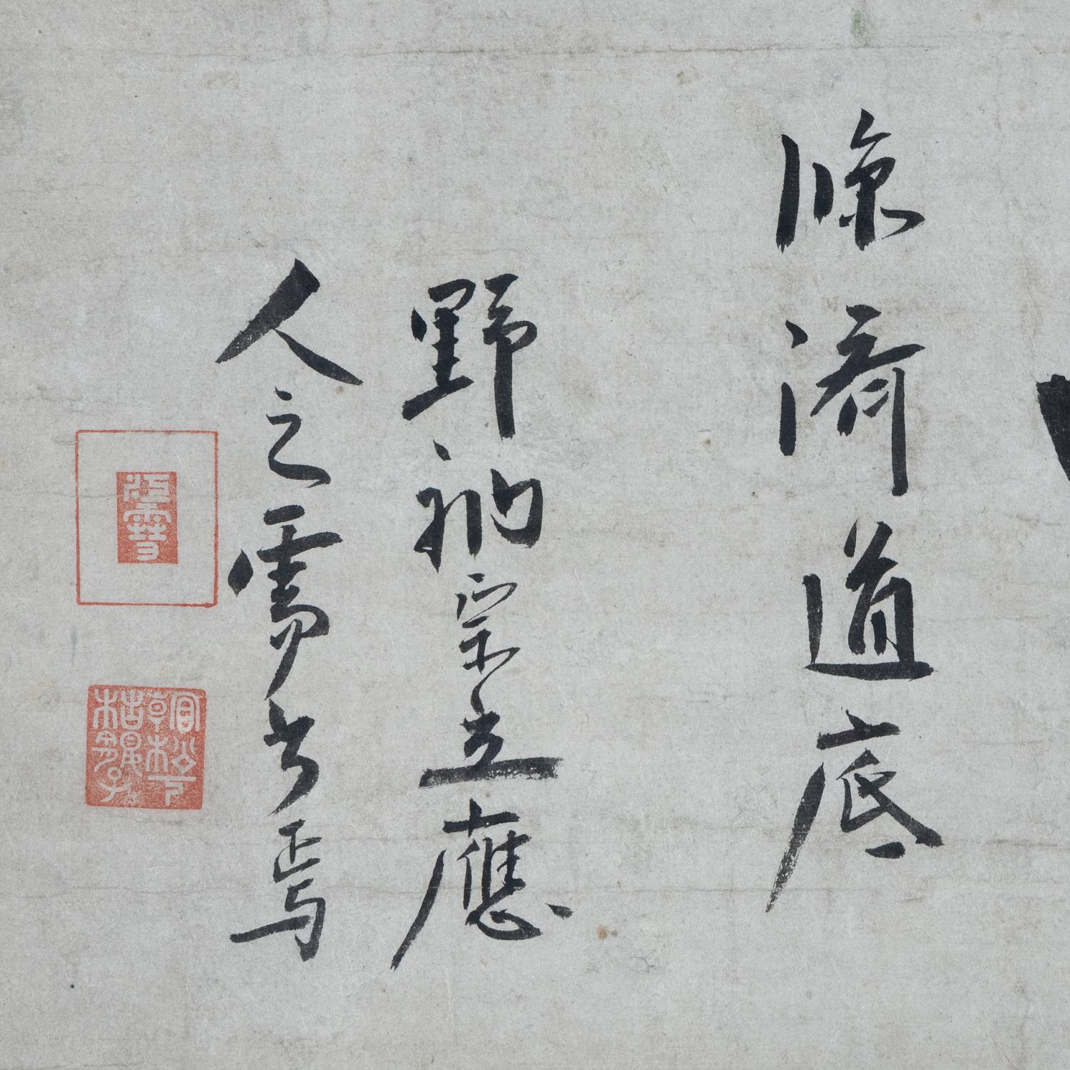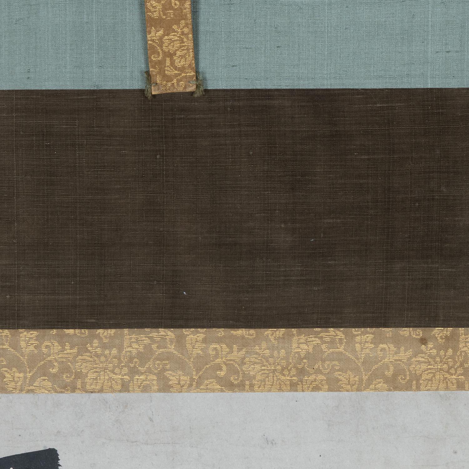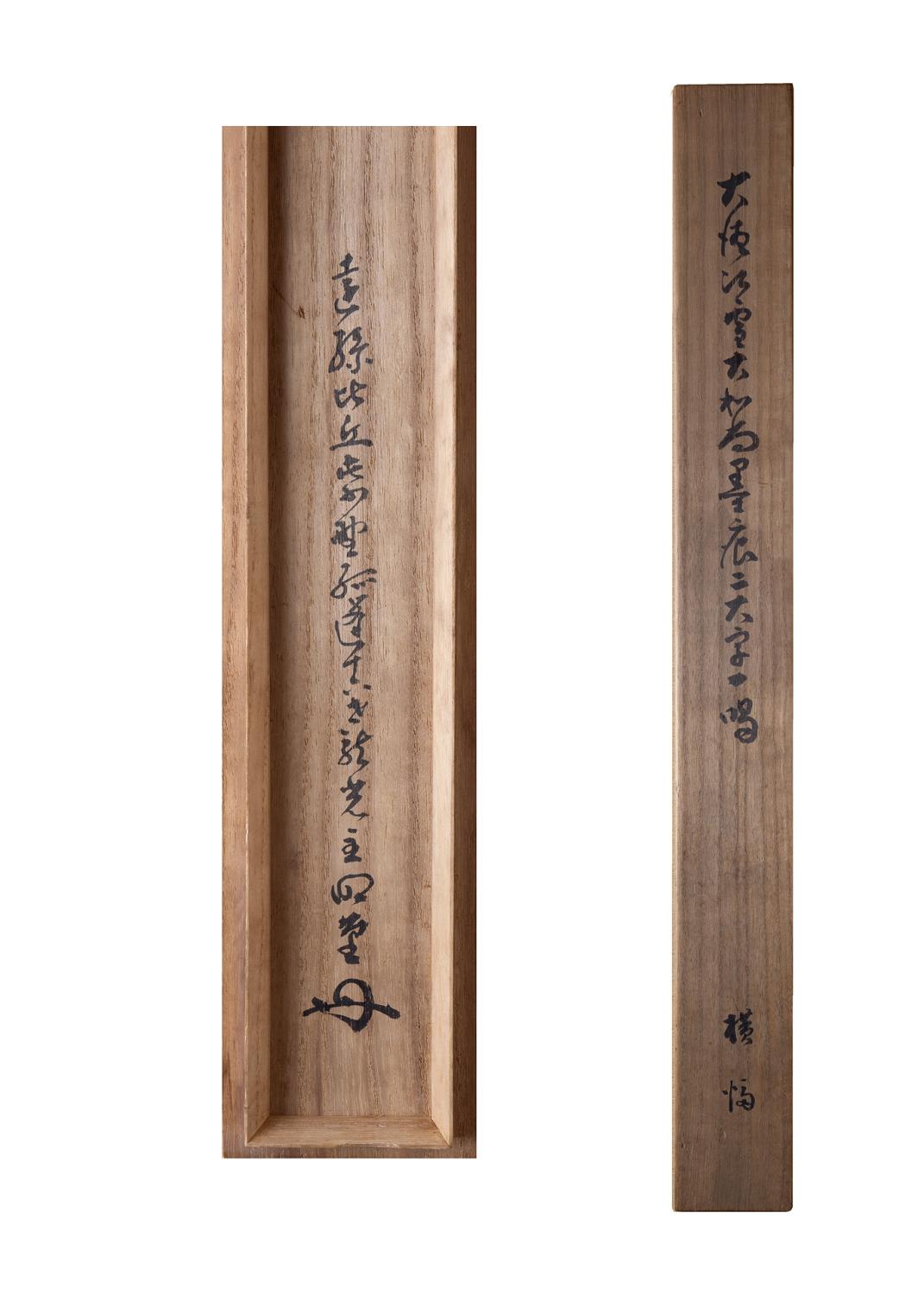 境地の最も深いところ。(真の師匠による一喝は,修行者全ての迷いを断ち切り,悟りの境地の最も深い根源に至らせる力を持っている)。箱書きは孤蓬庵小堀明堂和尚。