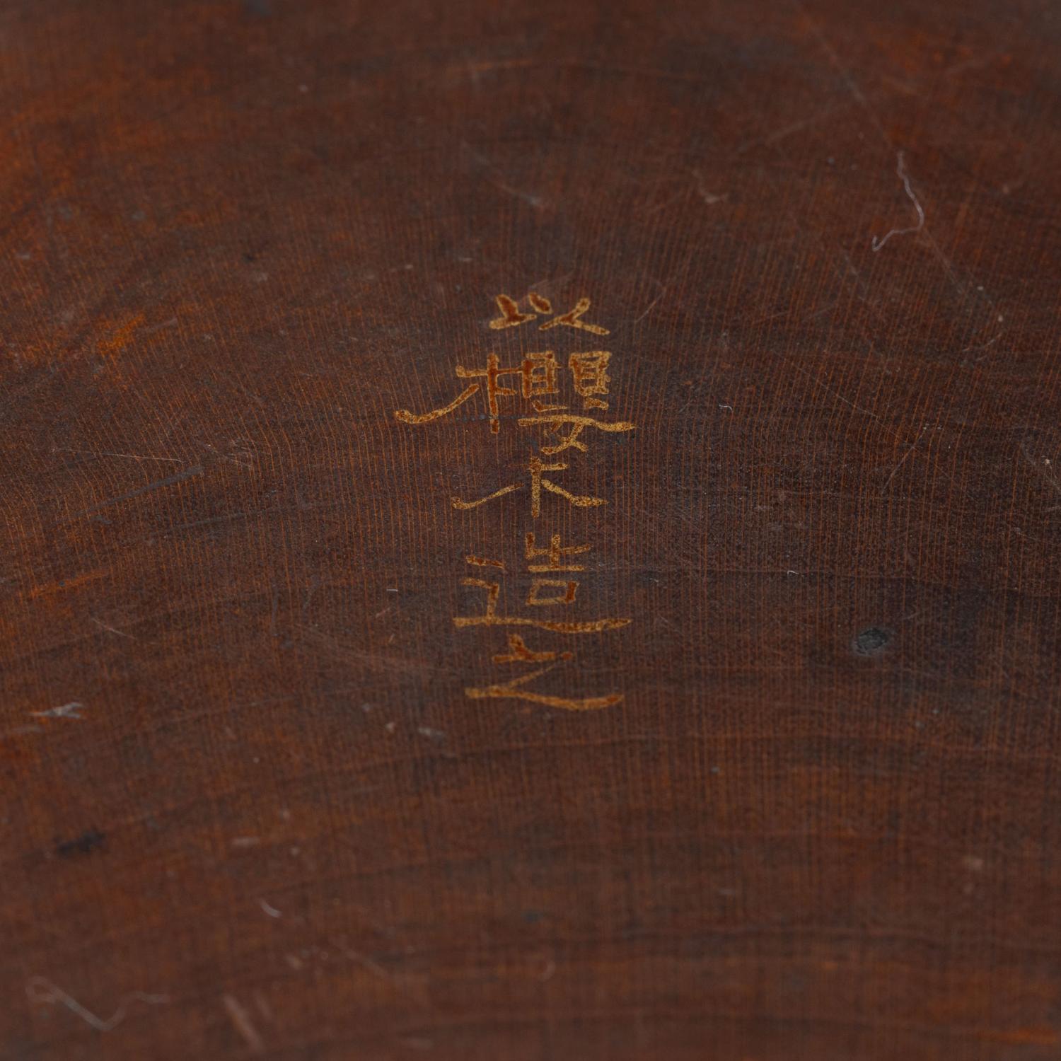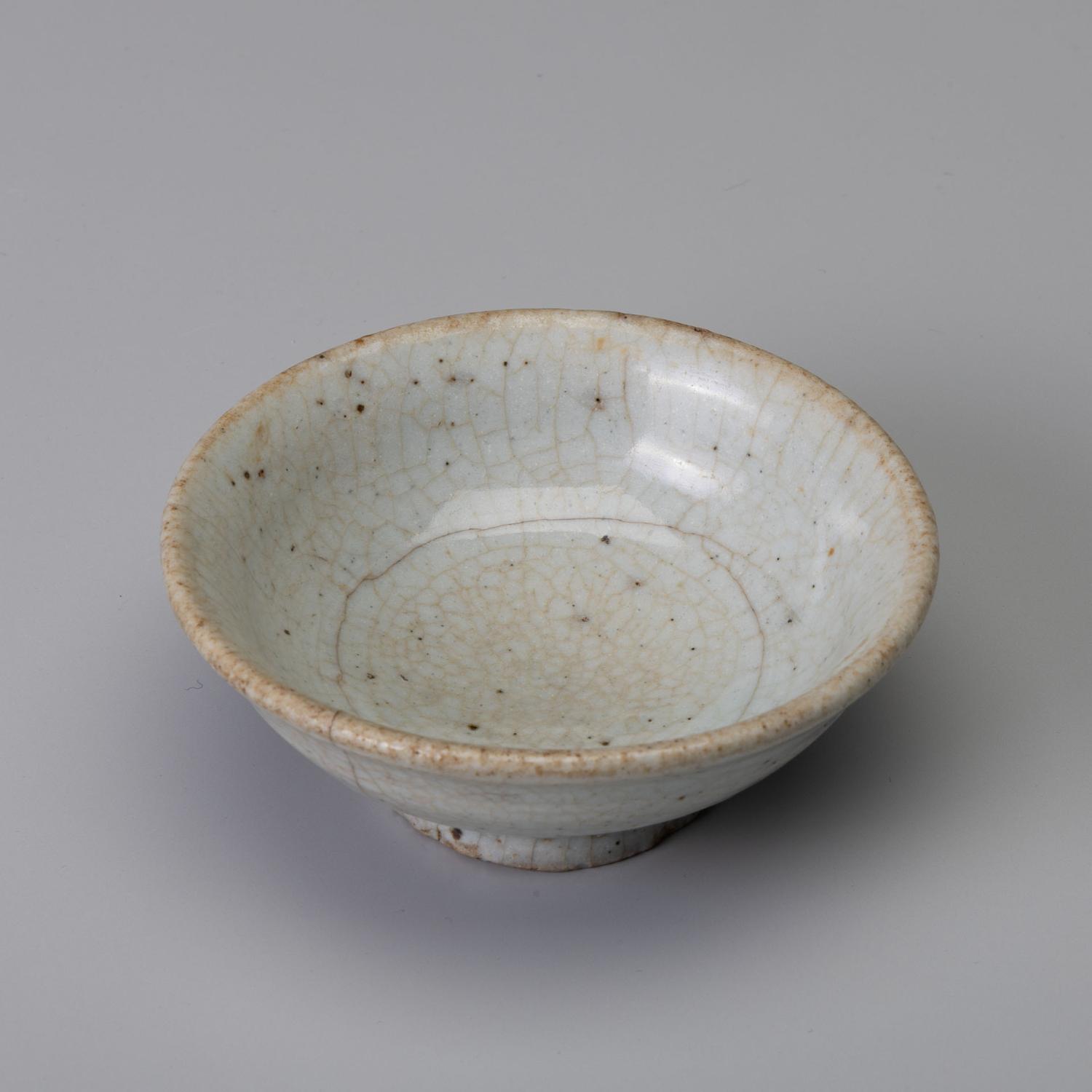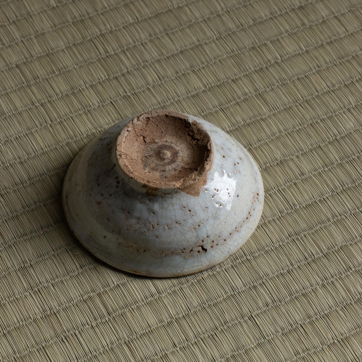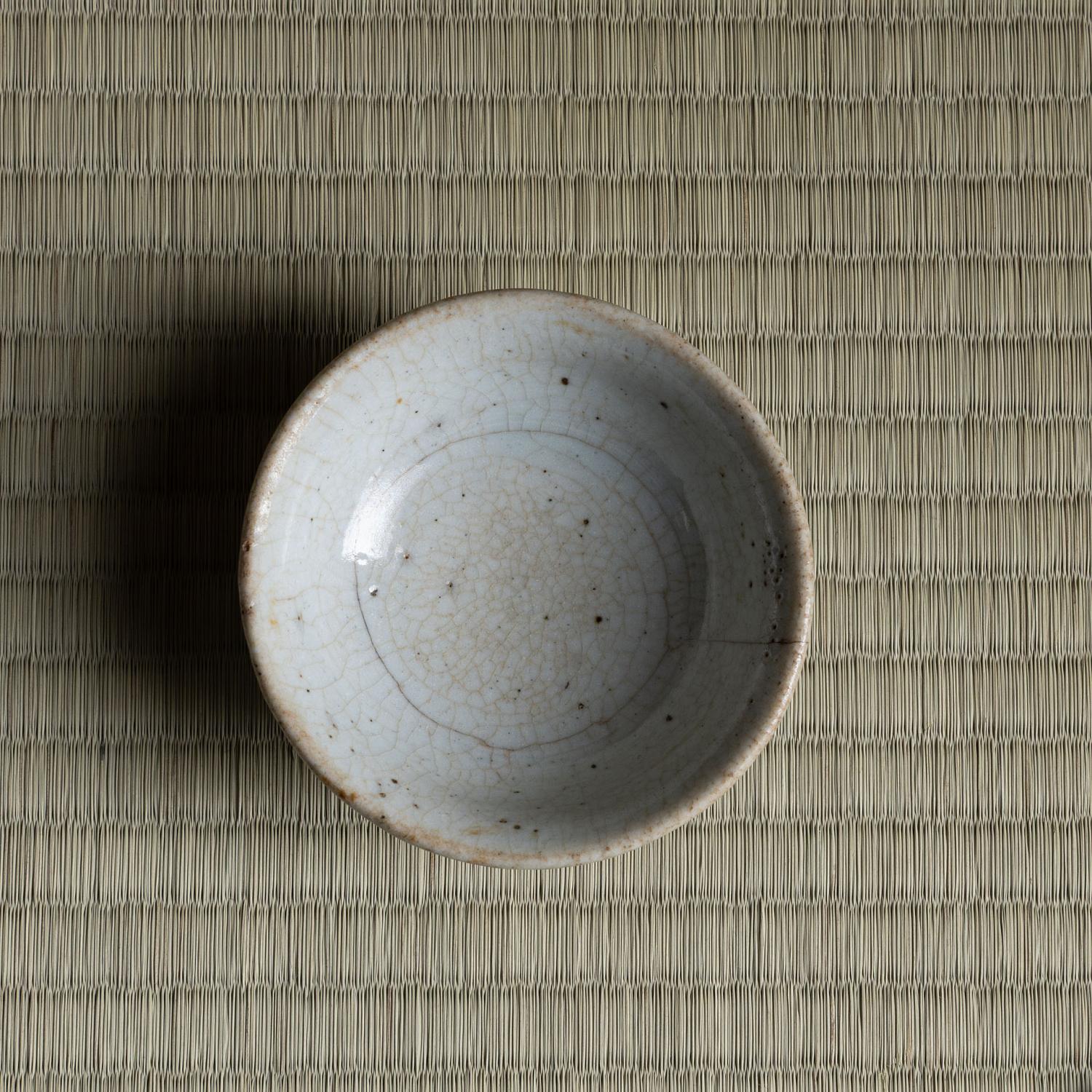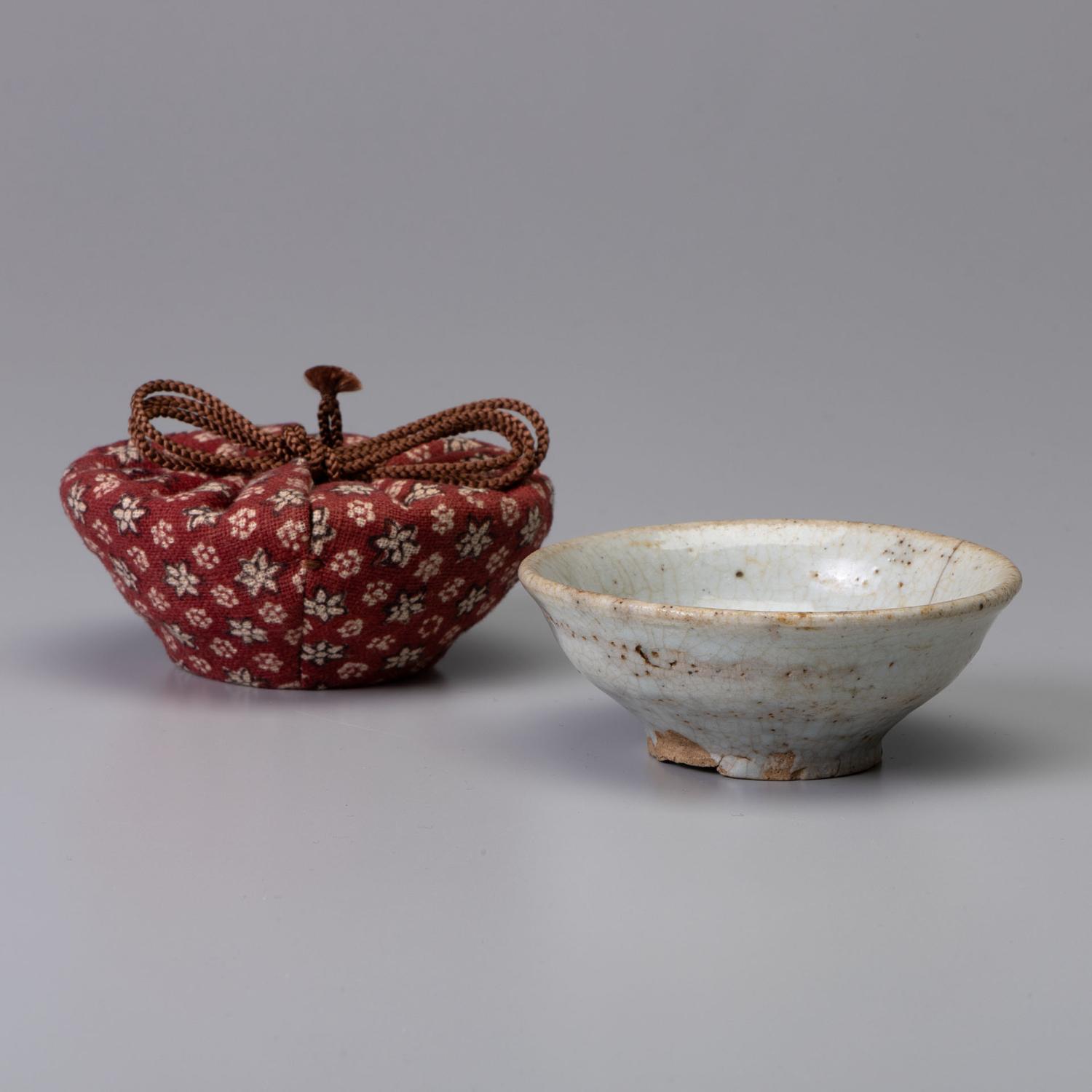 堅手 盃 一献 傾ける度に少しずつ育っていきそうな盃です。 更紗の仕服に入り桜の木で造った曲げの箱に入っています。 高:3.9糎 径:9.8糎