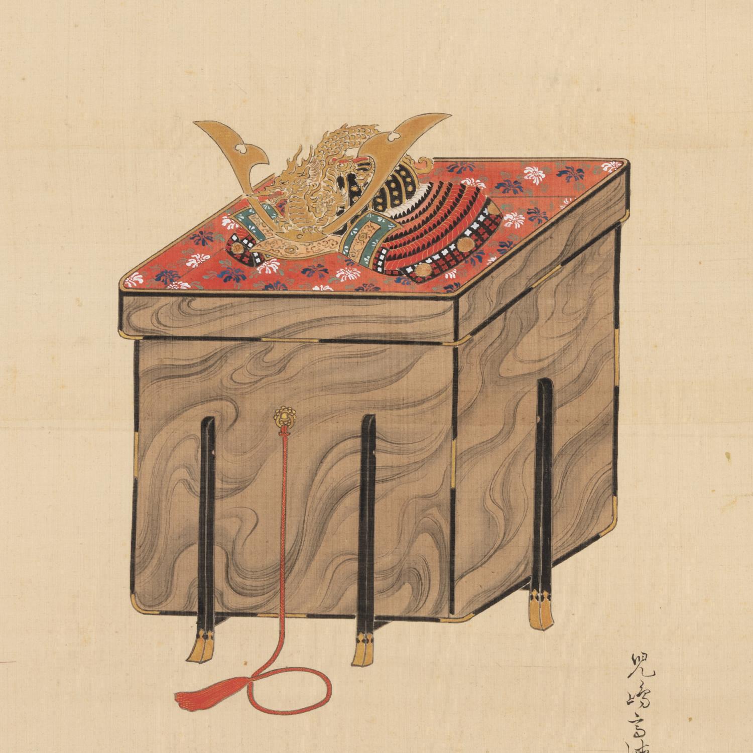節句の時期にお使い頂けます。 画中に児島高徳十六世とあり。 鳴海下郷家並三河太田家入札目録所載(昭和7年) 縦:175糎 横:47糎