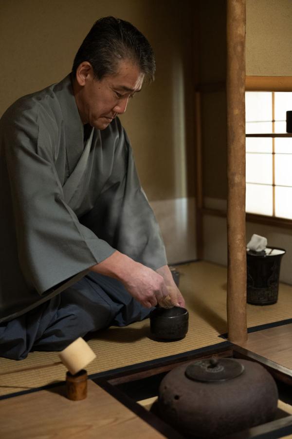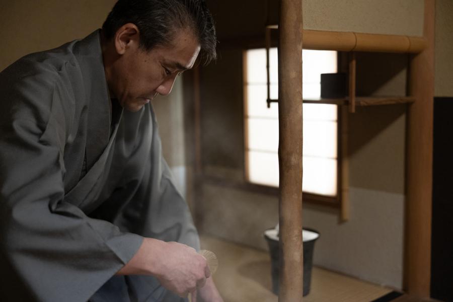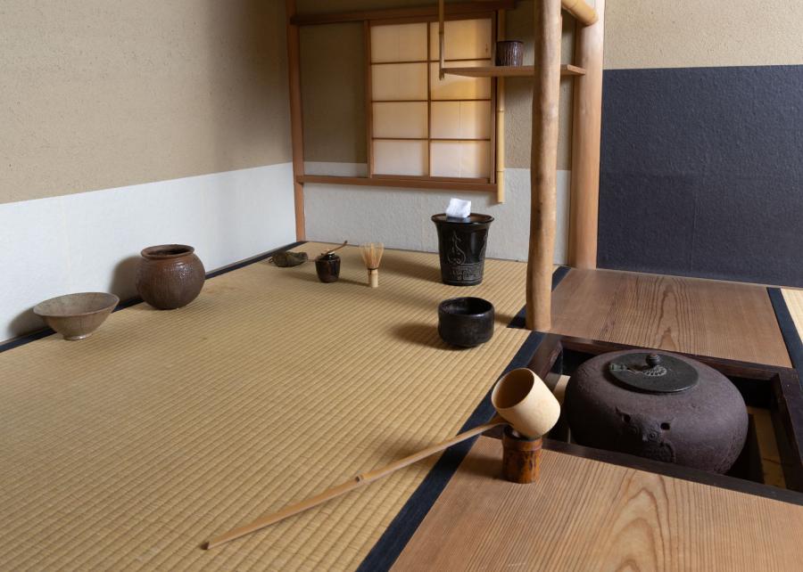 連子窓から柔らかい光が茶室を包み込む