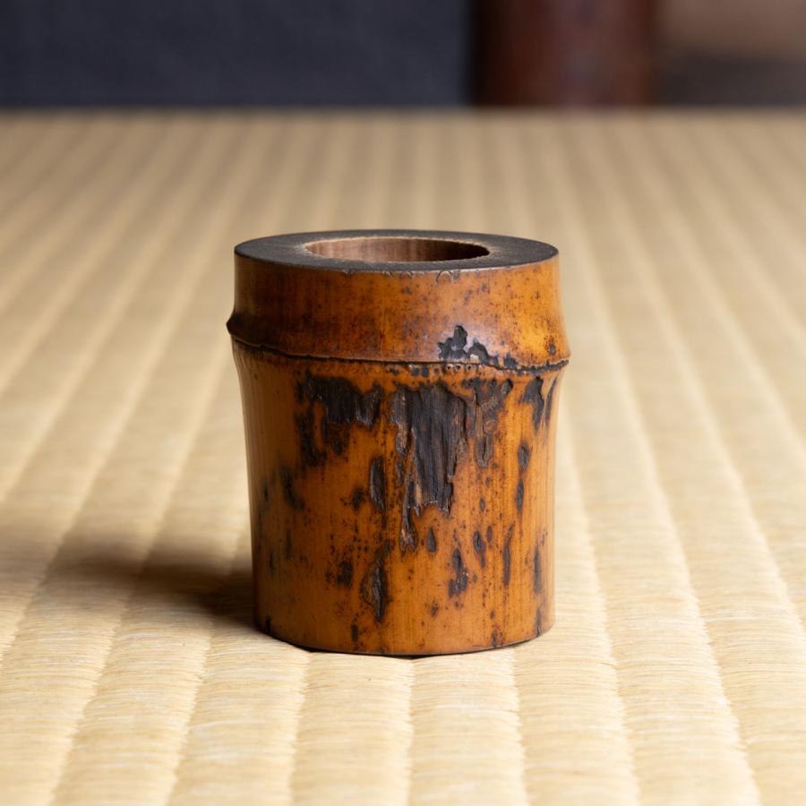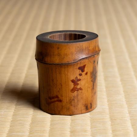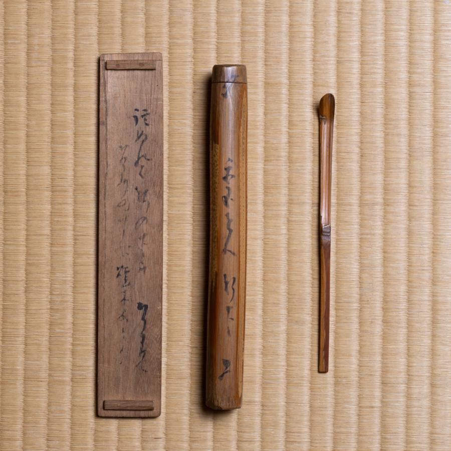 共筒・共箱(宗旦)です。茶杓の形がわずかに曲がっていることから、軒下の垣に使われた竹が水に触れて古び、通常であれば焼木になるところを茶杓にした──年の暮れに竹垣を新調して新春を迎える情景も重なり、この季節にふさわしいものと思いました。