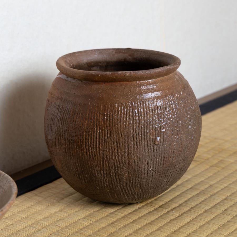 建水は見立ての南蛮。縄簾のような文様が上から下へ施されており、素朴で落ち着いた趣が十二月の名残に寄り添います。