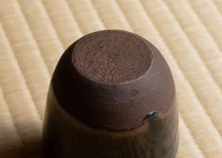 今回使用の花入は顔回より背が高く、孔子の弟子・顔回の尊称「顔子(がんす)」にちなみ、宗旦の四男・仙叟が銘を付けたものと考えられます。裏には黒漆で銘と在判がございます。煤で黒くなったふくべの侘びた趣が、年の暮れの風情にひときわよく合います。